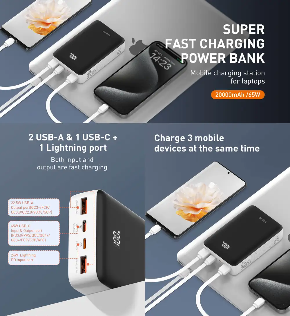LDNIO PQ27 20000mAh 65W Fast Charging Power Bank – Ultra-Fast PD Power Bank for All Devices