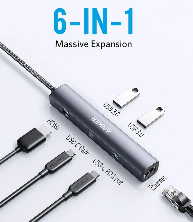 Anker 543 6-in-1 Slim USB-C Hub with 4K HDMI: