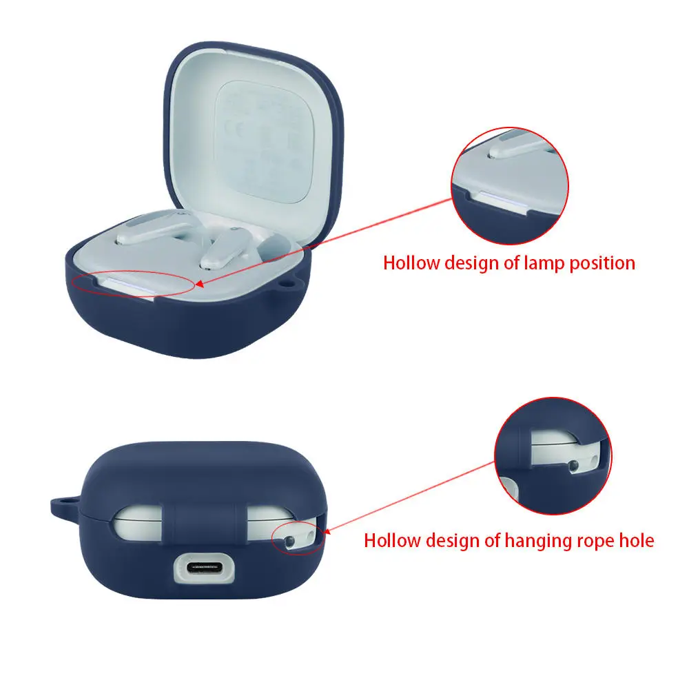 anker soundcore r60i nc silicone protective case blue open view anker soundcore r60i nc silicone case adhesive inside view anker soundcore r60i nc silicone case comfortable grip blue anker soundcore r60i nc silicone case led cutout lanyard hole