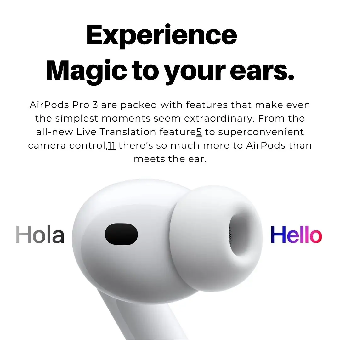- Live Translation: The AirPods Pro 3 support real-time language translation when paired with a compatible iPhone. This feature facilitates smooth communication between speakers of different languages, making it ideal for travel and international meetings.