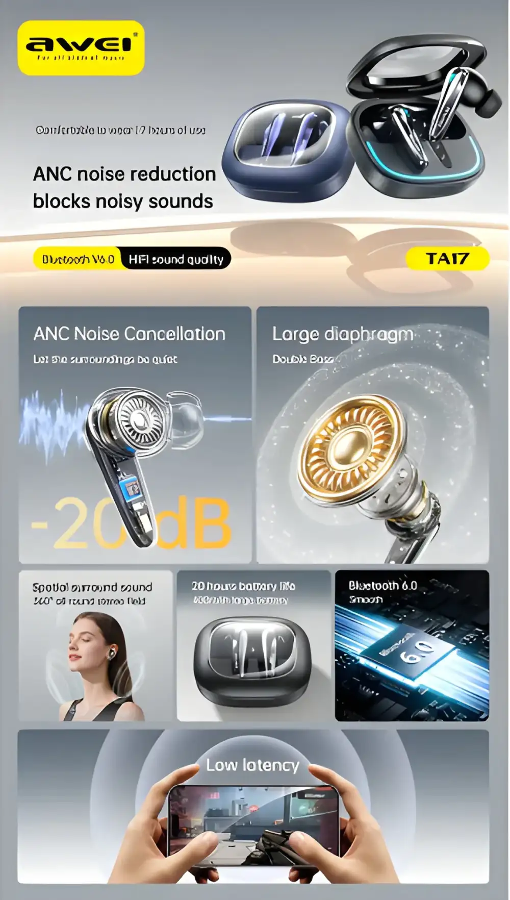 Specification Chart – Awei TA17 ANC True Wireless Earbuds