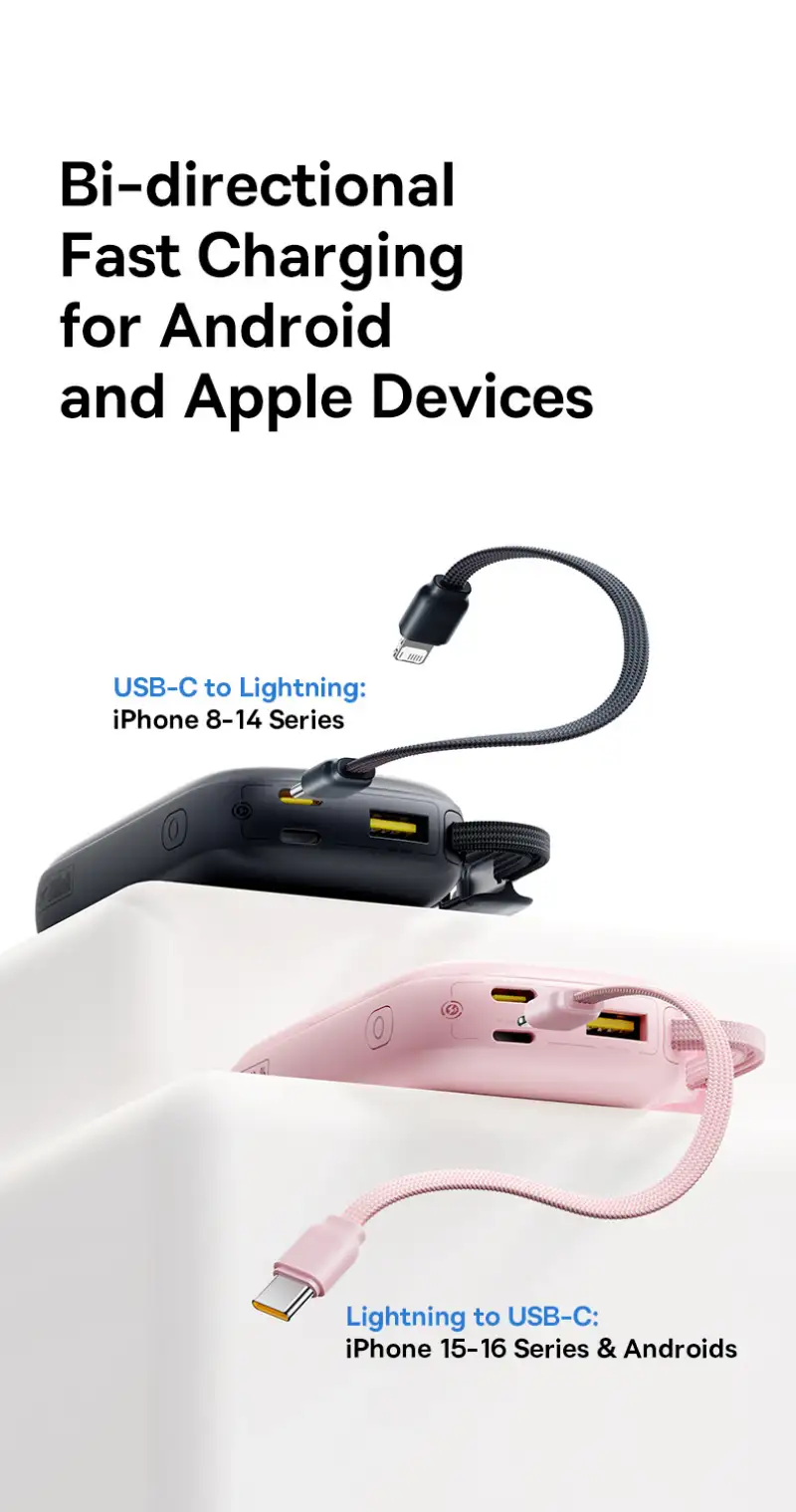 - The integrated Type-C to Lightning cable offers ultimate portability and convenience, ensuring users never have to carry separate cables when charging Apple devices.