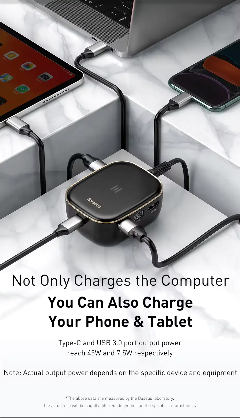 Baseus Type-C HUB adapter multifunctional charger design Baseus HUB adapter with AC charging and multi ports Multifunctional Baseus Type-C charger for laptops and phone