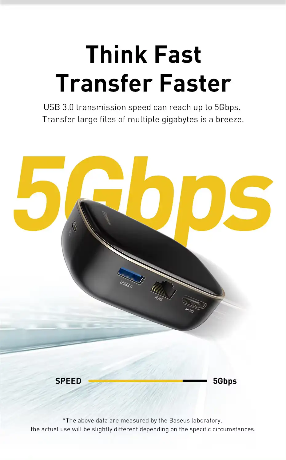 The Baseus Type‑C HUB Adapter AC offers multiple ports for connectivity, AC power delivery, and a compact portable design for seamless multitasking. It’s ideal for data transfer, device charging, docking setups, presentations, and travel use, providing stable performance, broad compatibility, and enhanced productivity.