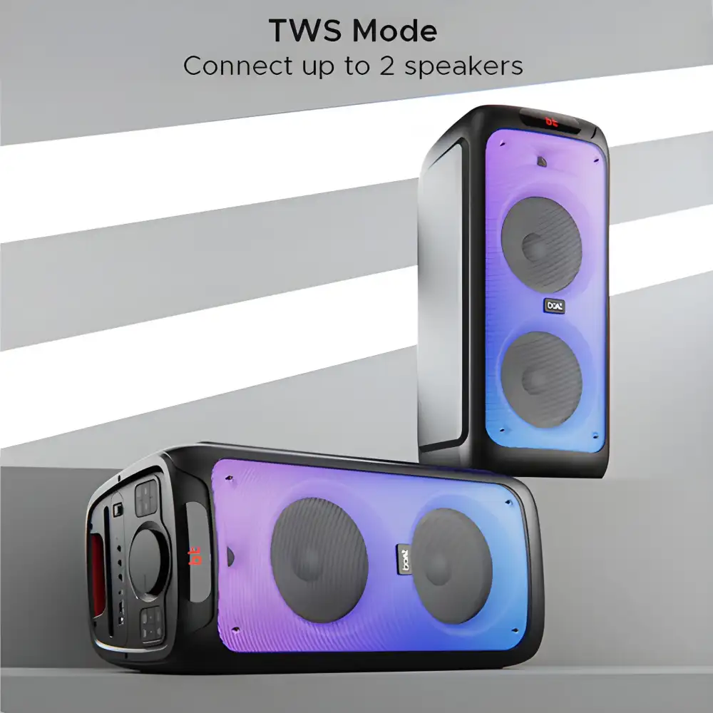 • 2 Microphone Input Ports: Amp up parties with musical duets and karaoke face-offs using two microphones. Boasting dedicated input ports, this speaker is truly your pal for matchless fun.