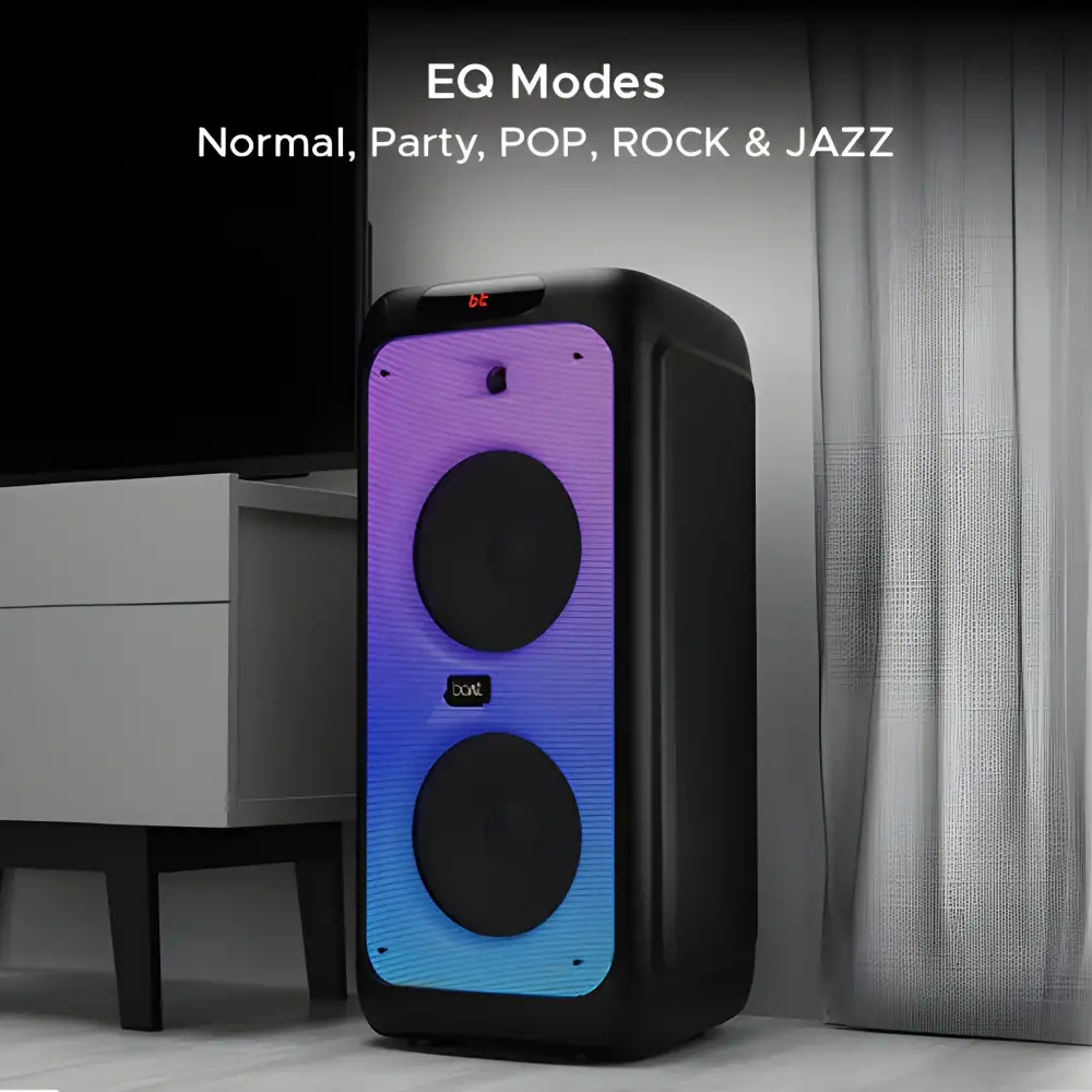 • EQ Modes: Normal, Party, Pop, Rock & Jazz—a mode for each mood. Attune the speaker audio to your preference and dive into the music for an elevated feel. Not just for partying, the crisp audio is also perfect for enjoying your preferred content.