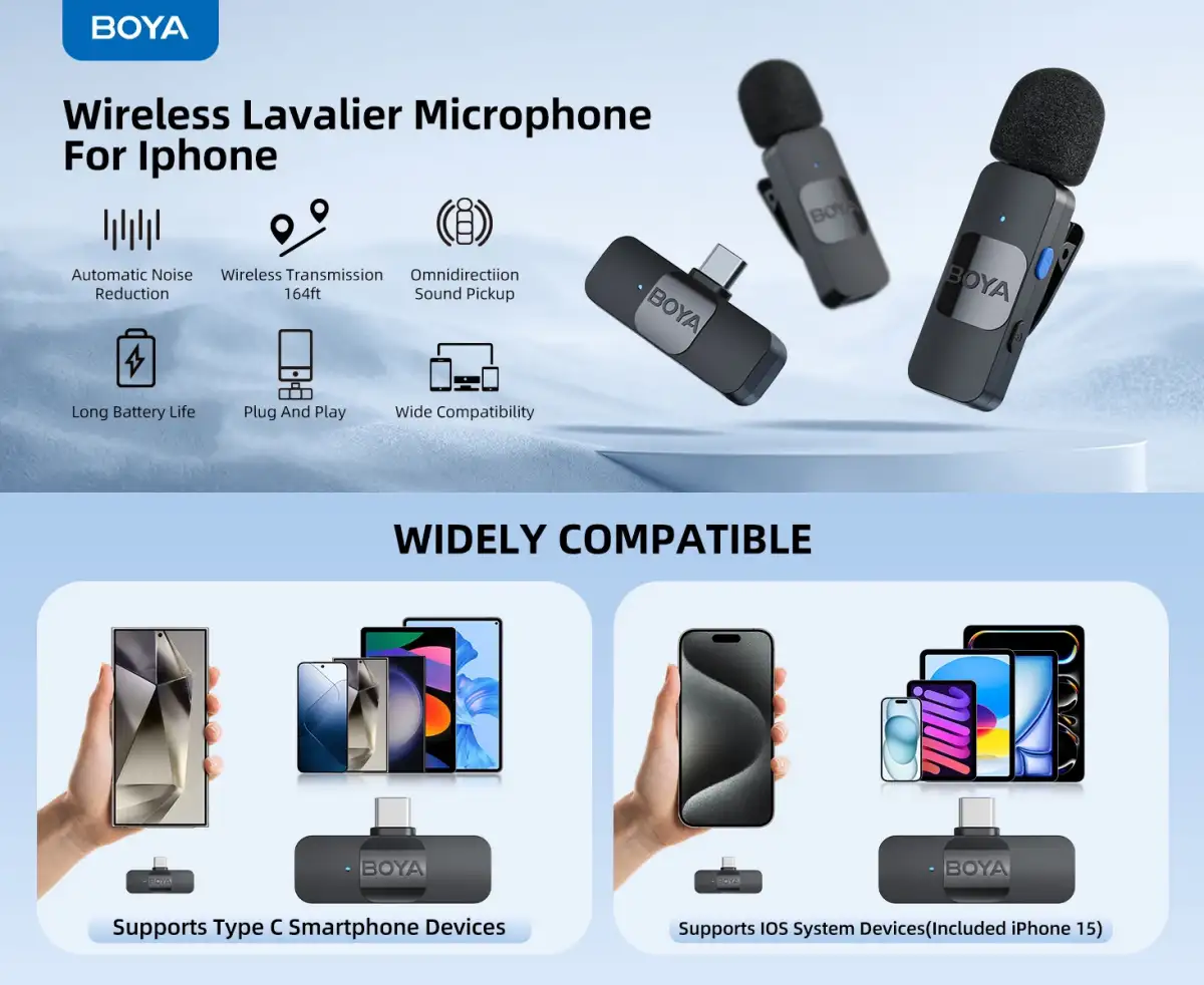 • Advanced 2.4 GHz Wireless Transmission engineered with stable low-latency 2.4 GHz wireless connectivity that delivers reliable, interference-free audio signals directly to Type-C devices, ensuring consistent performance for recordings, vlogs, livestreams, and real-time communication without cables or signal drops.