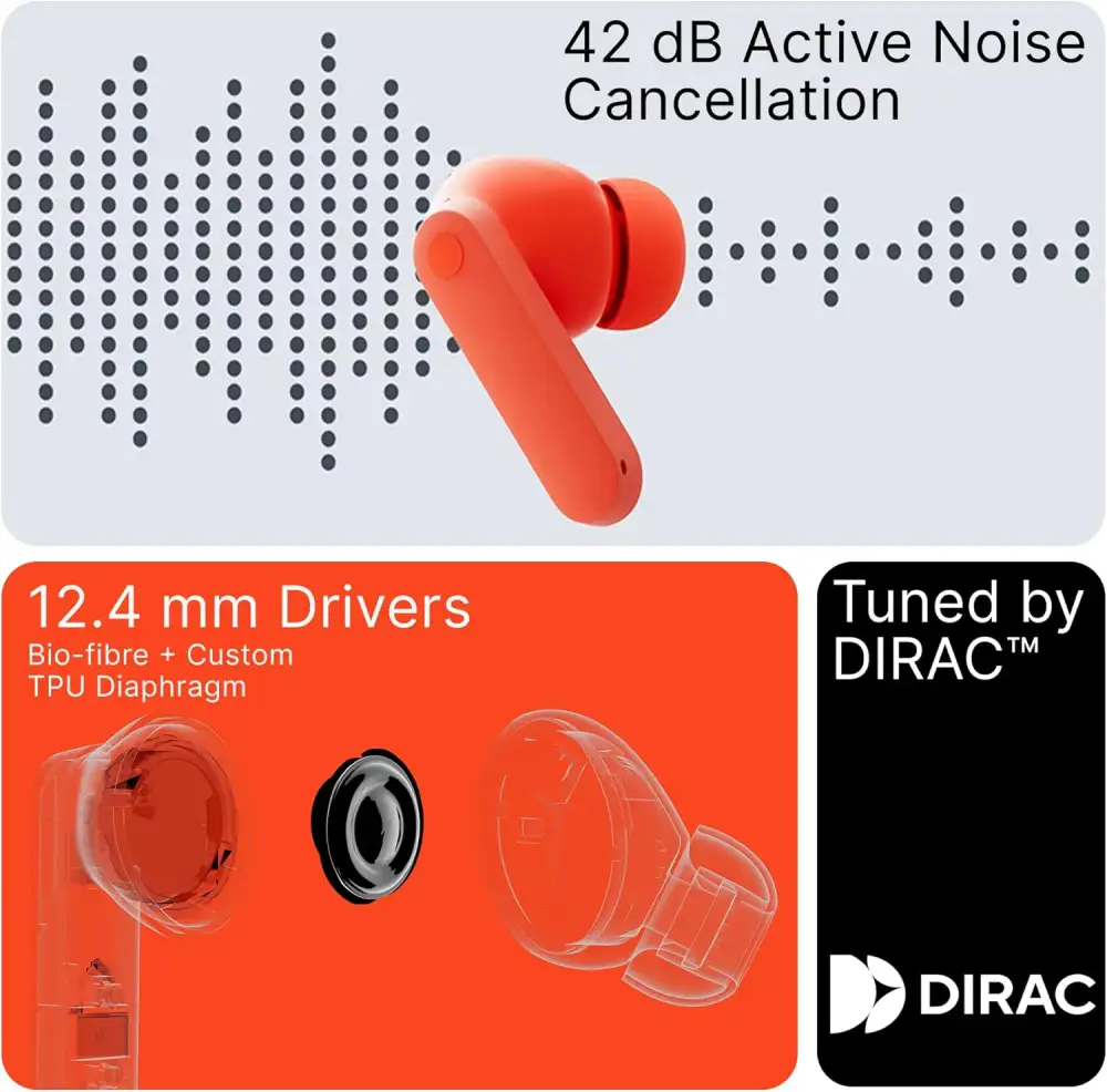• Noise Cancellation: 42dB Hybrid ANC (up to 2900Hz)