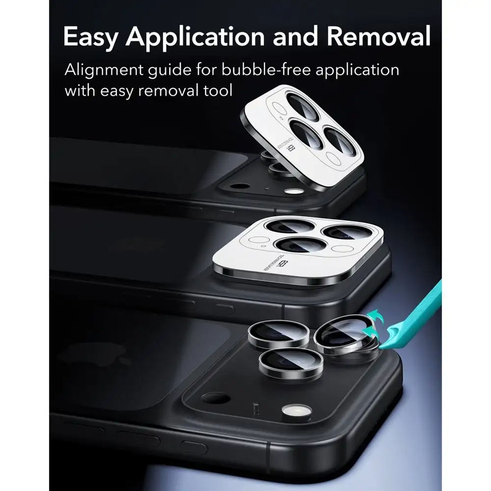 • Easy Precision Installation uses a tailored adhesive that aligns accurately with each lens, ensuring secure placement and maintaining full touch and focus responsiveness, creating a refined protection solution that safeguards premium optics while preserving the full photographic capability of the iPhone 17 Series.
