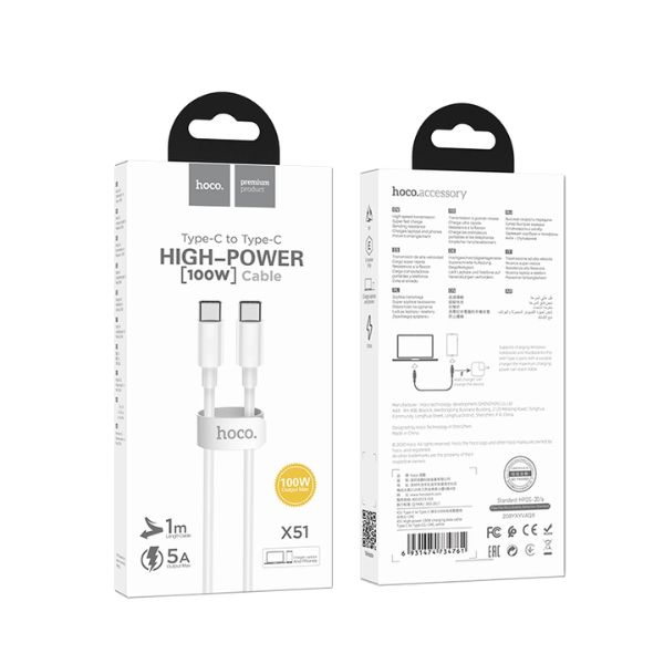 Hoco X51 100W PD Fast Charging Type-C to Type-C Cable 1 Meter