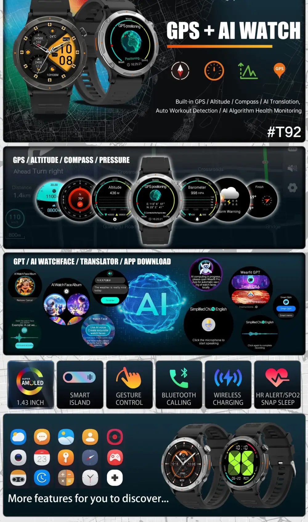 • The watch features advanced health monitoring sensors, including heart rate and SpO2 tracking, offering continuous insight into physical condition during workouts and outdoor sessions, helping users maintain awareness of performance and recovery.