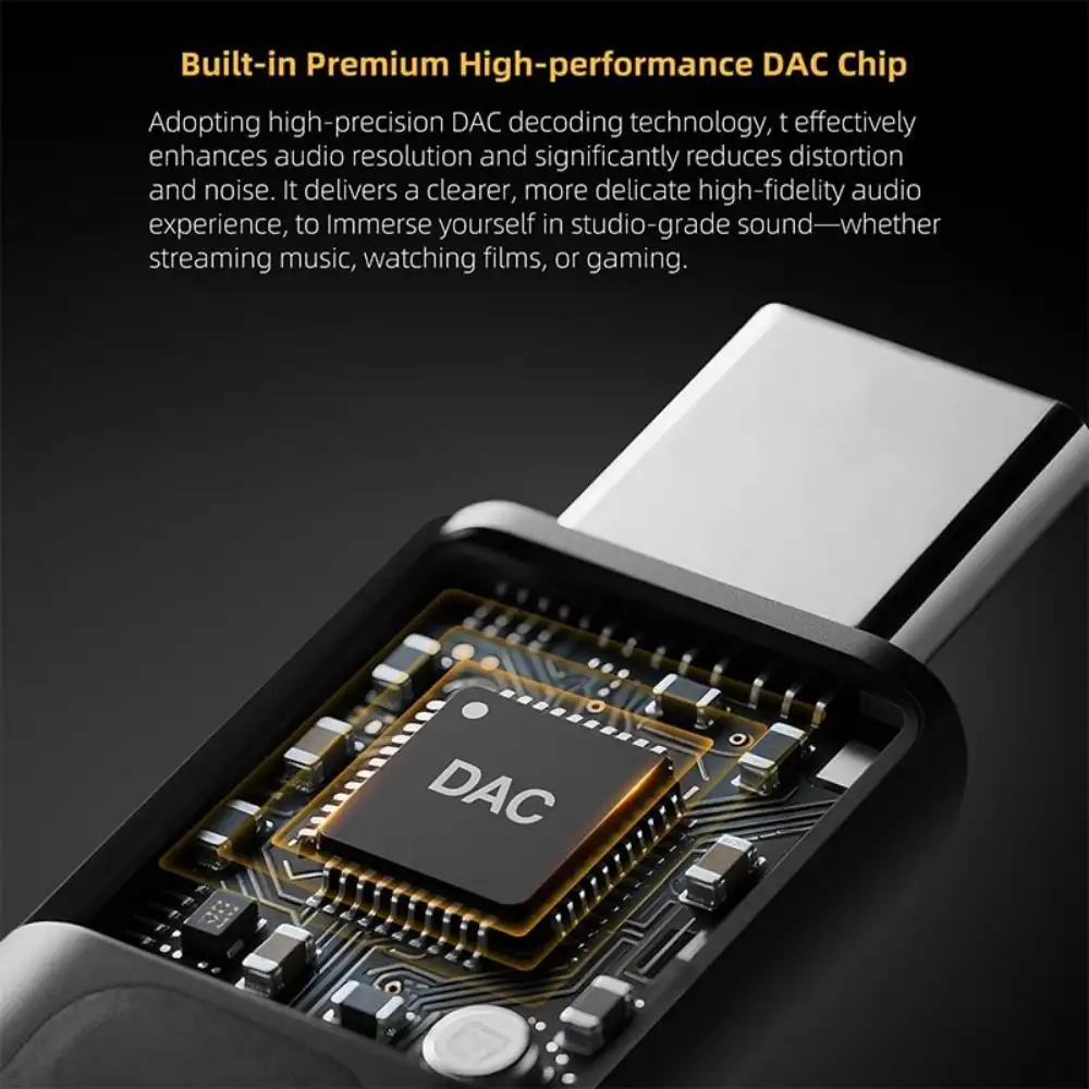 - Universal Compatibility and Plug-and-Play Operation—Works automatically with OTG-enabled USB-C devices, including phones, tablets, and laptops, requiring no drivers. Supports a wide range of headphones and earphones thanks to its strong output and dynamic capability across impedance.