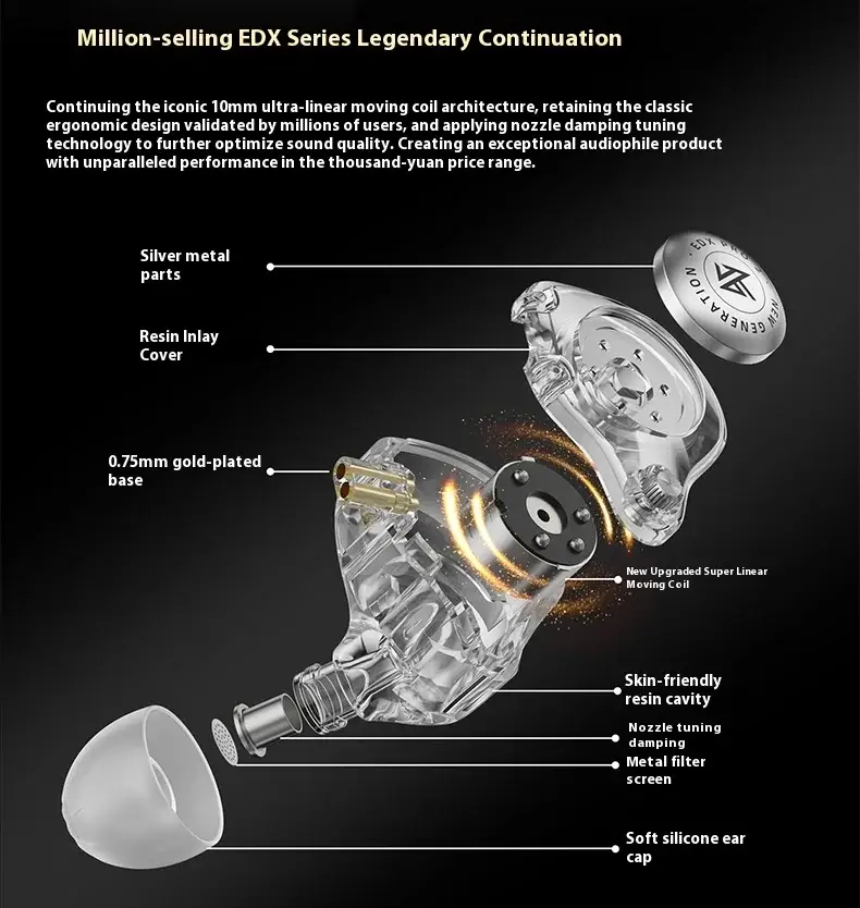 • Experience audio like never before with the KZ EDX Pro 2 Earphones, equipped with a powerful 10mm Super Linear Dynamic Driver. This innovative technology delivers rich bass, clear mids, and crisp highs, ensuring an immersive listening experience for musicians, audiophiles, and casual listeners alike. Enjoy every note in stunning clarity across all genres thanks to reduced distortion and a wide soundstage.