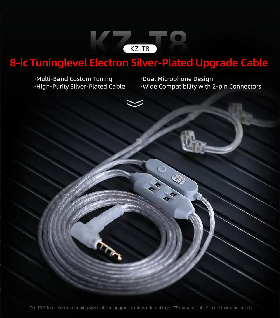 KZ T8 silver plated upgrade cable with 8 level tuning Premium KZ T8 cable designed for enhanced sound Silver plated IEM cable for clear audio performance