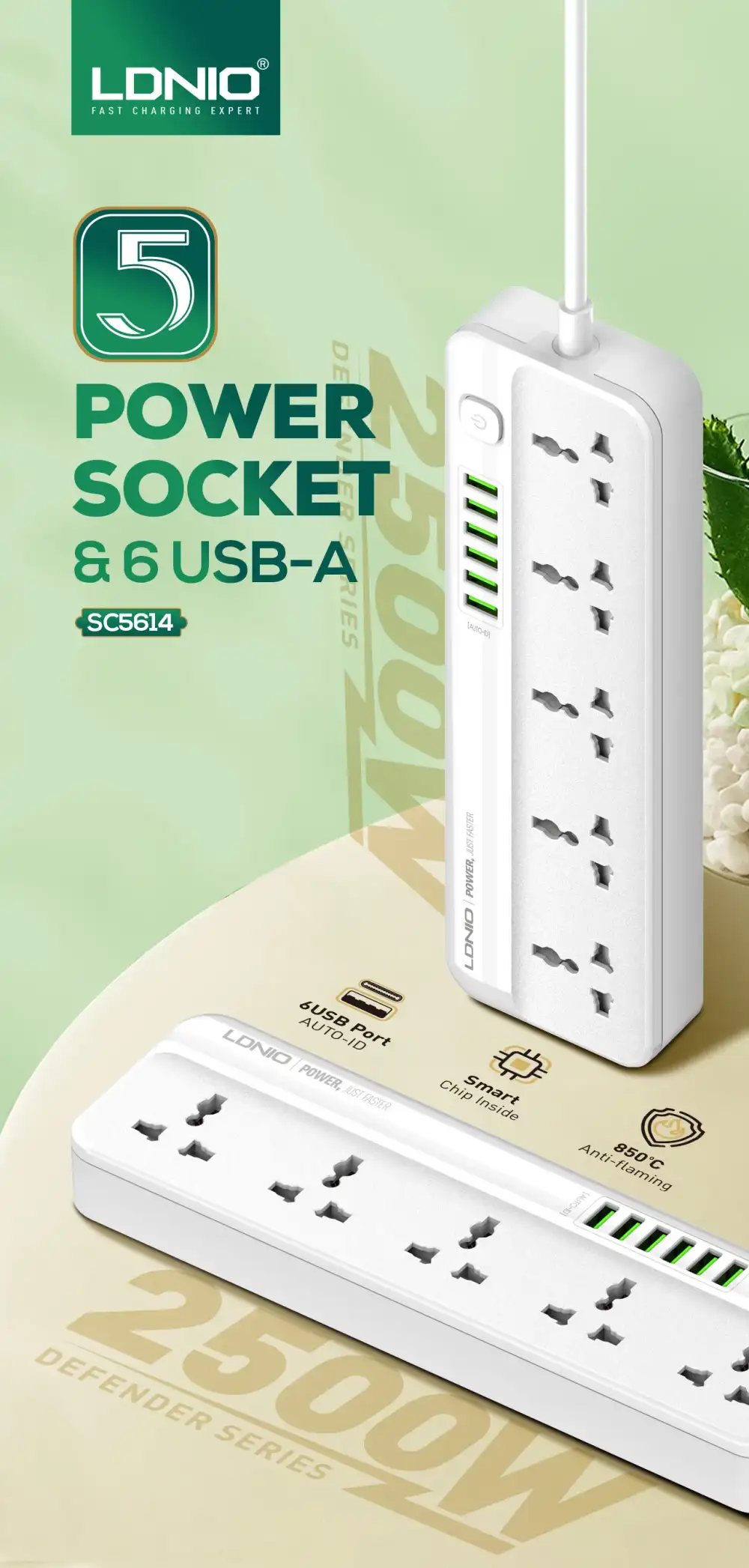 - High Power Capacity: The LDNIO SC5614 is designed to handle a significant power load, allowing you to connect and power a wide range of devices, including high-power appliances, without overloading the circuit. This ensures you have the necessary power to operate all your essential devices without any interruptions.