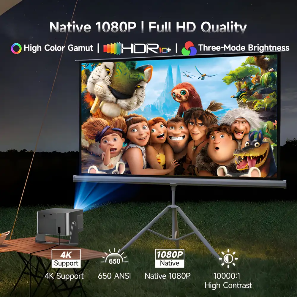 • HD Native Resolution with 4K Input Support ensures detailed and sharp projection quality that accommodates high-resolution content from various sources such as laptops, streaming devices, and gaming consoles, allowing users to enjoy rich visual clarity regardless of content type.