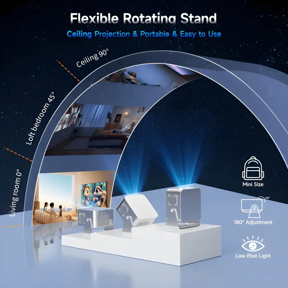 • Consistent 650 ANSI Lumens Brightness on the Magcubic HY350GT Portable Projector delivers vibrant and clear image projection, making it suitable for home cinema, gaming, and presentations, with enhanced visibility even in rooms with ambient light, ensuring visuals remain lively and engaging.