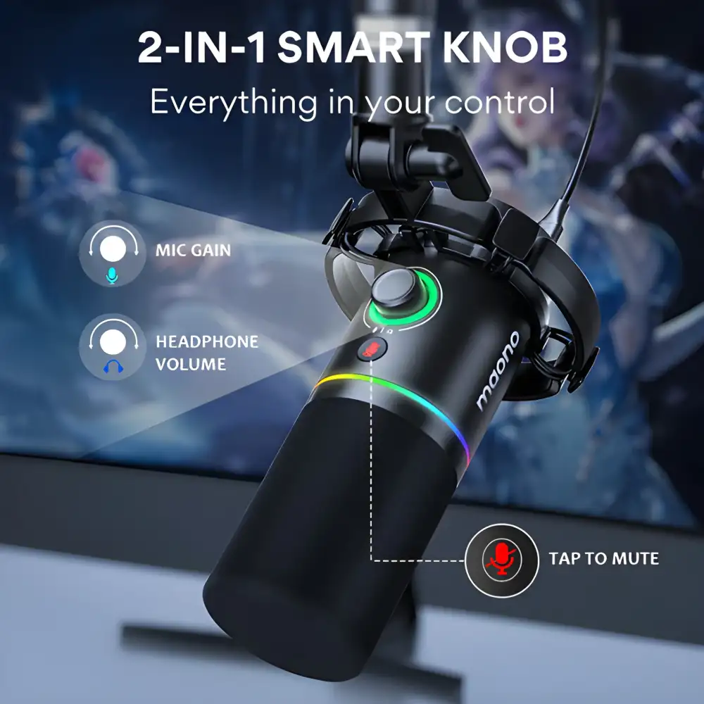 • The accurate cardioid pickup pattern focuses on capturing voice directly in front of the mic while minimizing surrounding noise, room echo, and unwanted sound, making it perfect for streaming rooms, podcast setups, gaming environments, office recording, and home studios