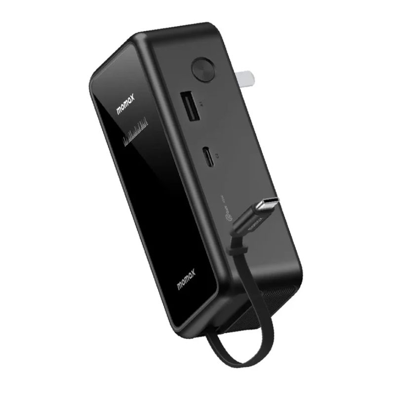 Designed with the traveler in mind, the Momax 1-Pac⁺ features interchangeable global plug adapters and a brilliant TFT real-time display for power monitoring. Its rugged, fireproof construction ensures safety and durability, making it the perfect everyday hybrid GaN battery pack for travel and daily charging.