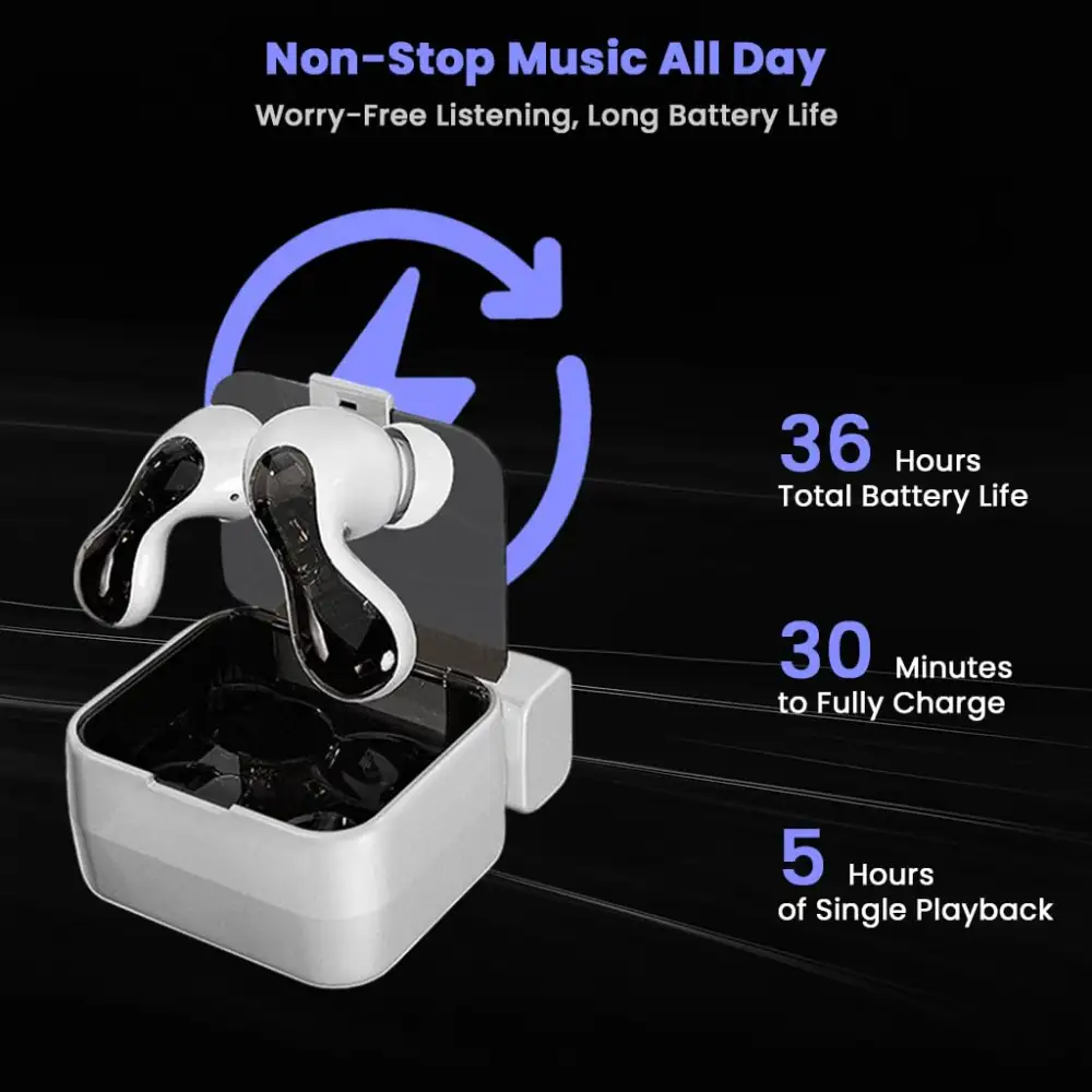 • Portable Long-Lasting Battery with Charging Case built with efficient battery performance that supports extended playback on a single charge, paired with a compact charging case that provides multiple additional charges—perfect for travel, commuting, work, and daily use without frequent recharging