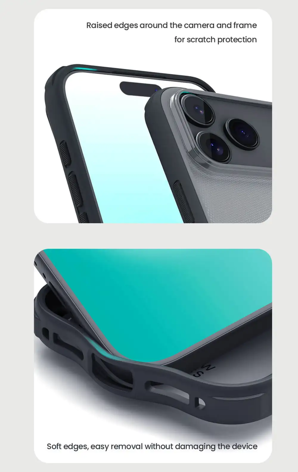 • Raised Bezel Design for Extra Protection: Designed with elevated bezels around the screen and camera area to safeguard vulnerable surfaces from scratches and direct impact when placed face-down or set on rough surfaces, maintaining your device’s display and lens safety without compromising sleekness