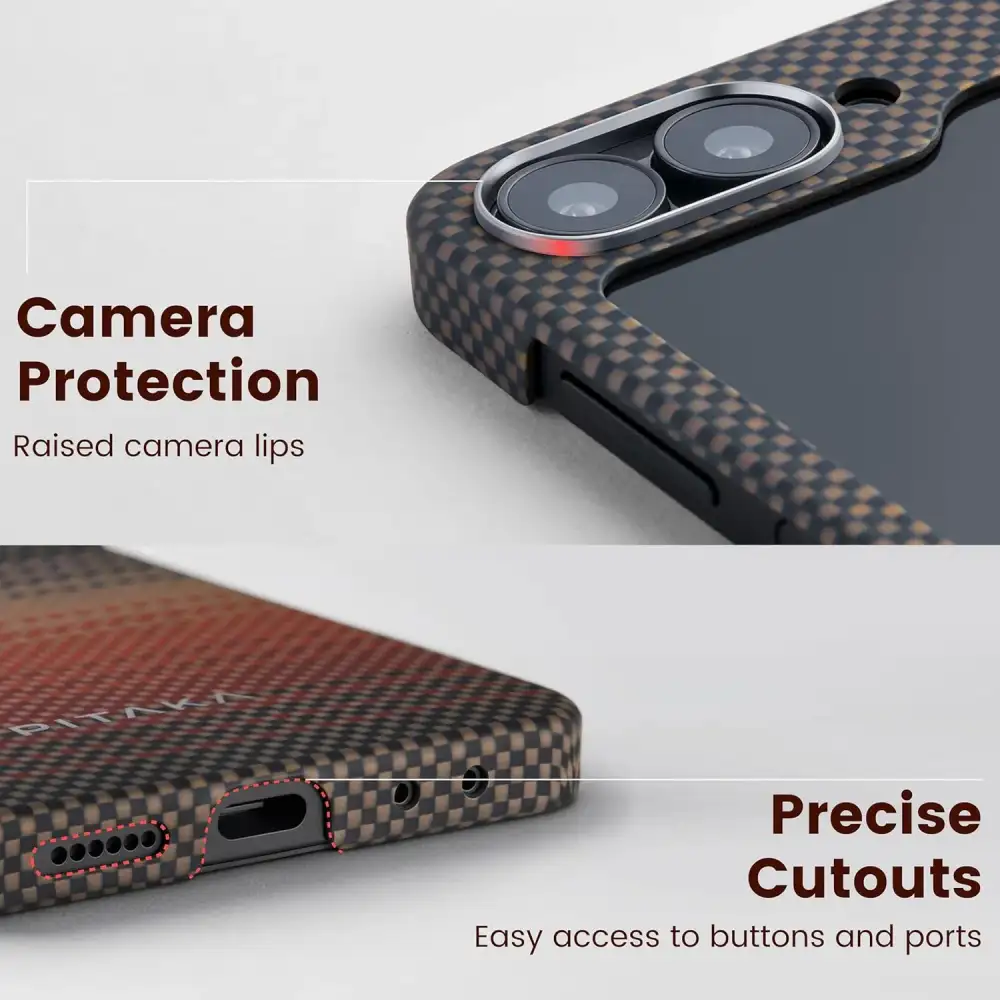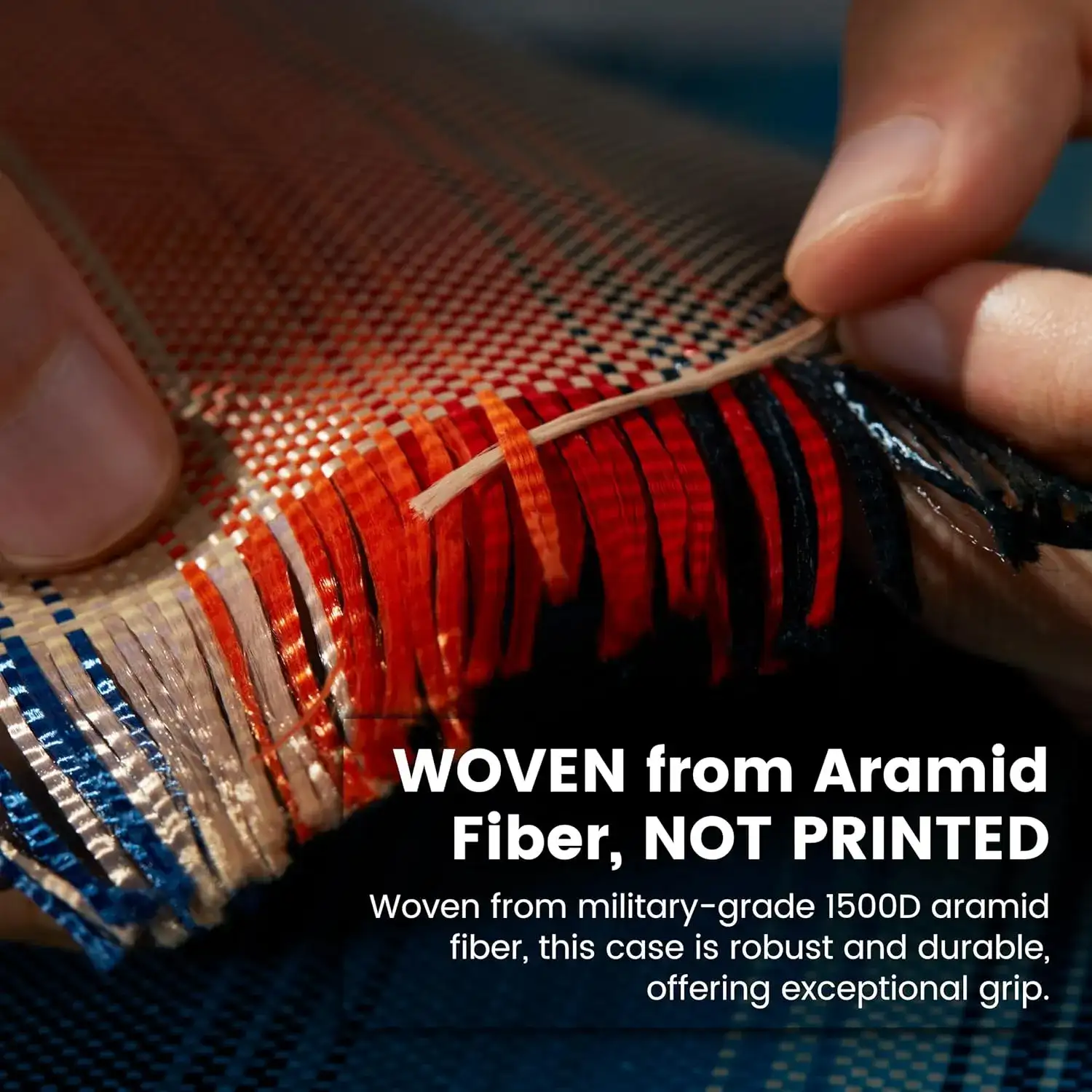 • WOVEN, NOT PRINTED: Woven from 1500D aramid fiber, a strong yet light material commonly utilized in aerospace and military gear, this Samsung Z Flip 6 case provides exceptional strength, lightness, and resistance to scratches, corrosion, and discoloration. Through Fusion