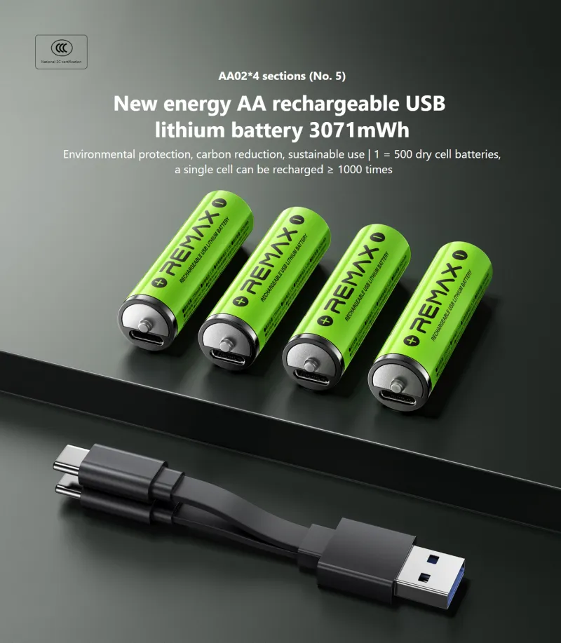 Remax AA02 3071mWh AA USB Rechargeable Lithium Battery