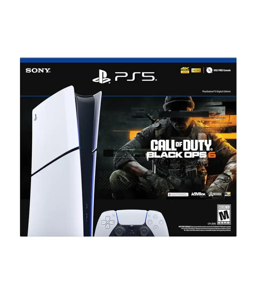 - The bundle includes Call of Duty: Black Ops 6 as a digital download, providing high-intensity missions, multiplayer combat, and advanced visual effects that showcase the PS5’s true capabilities. It’s an ideal choice for gamers seeking premium performance and next-level entertainment in a slim, all-digital package.