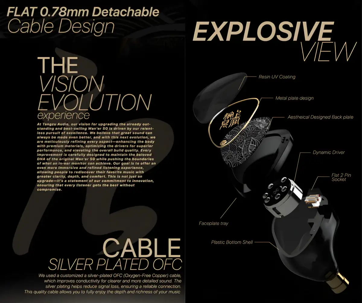 • Redesigned Ergonomic Fit for Superior Comfort:Crafted through extensive studies and real user feedback, the new shape of the Tangzu Wan’er ensures a more natural and secure fit. This redesign improves long-term comfort and sound isolation, making it ideal for extended listening sessions.
