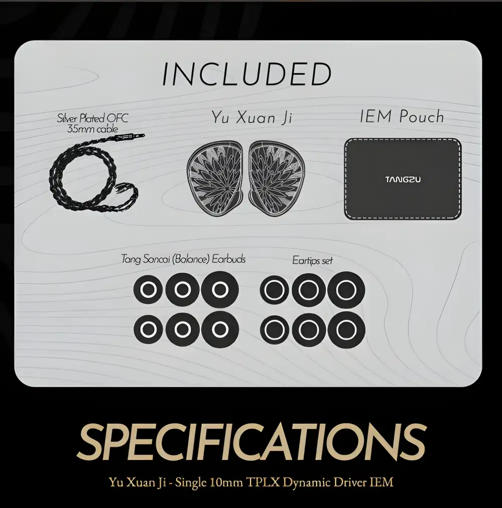 - Included Accessories: IEM pouch, 3 pairs Tang Sancai balanced eartips, 3 itional pairs of ea eartips, silver-plated OFC cable