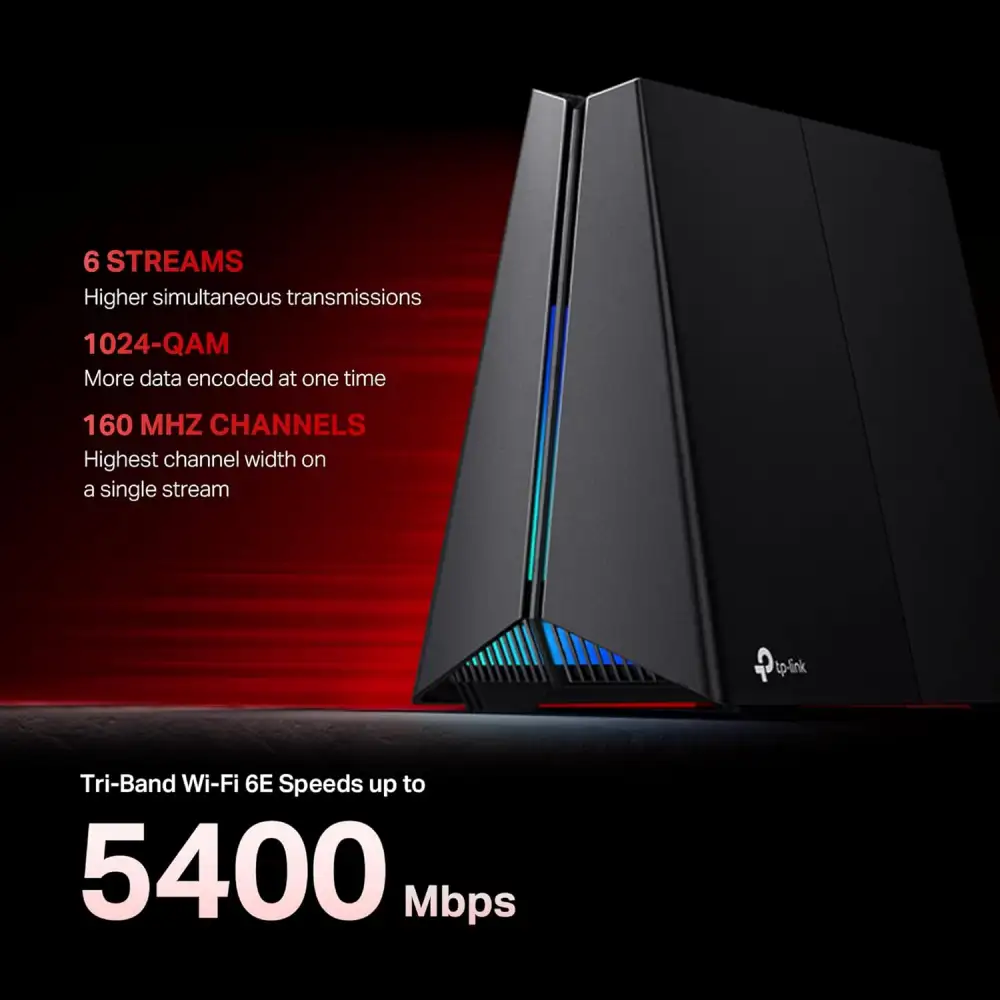 • The TP-Link Archer GXE75 AXE5400 delivers next-level wireless performance with Wi-Fi 6E, using the newly opened 6 GHz band to provide ultra-low-latency connections ideal for competitive gaming, high-resolution streaming, and bandwidth-heavy online activity where stability and speed are essential.