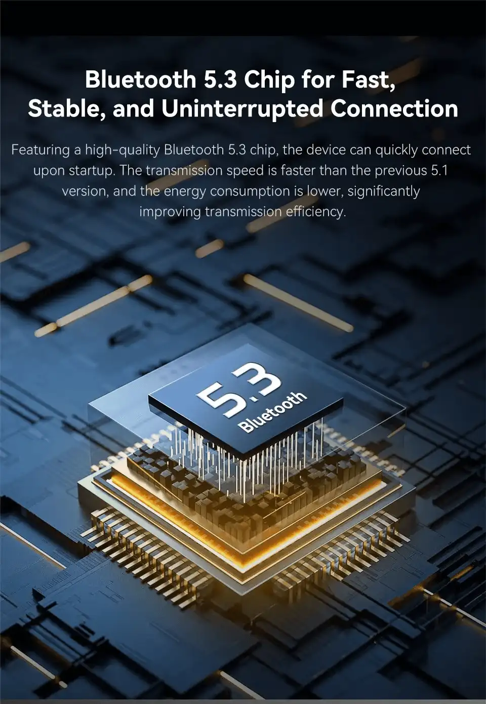 - Equipped with the Qualcomm QCC3071 chipset, it ensures high-speed transmission, ultra-low latency, and superior sound quality with support for aptX Adaptive, SBC, and AAC codecs. This delivers rich, dynamic audio with crisp details and powerful bass, rivaling traditional wired setups. The dual independent DAC architecture enhances sound clarity and separation, making it ideal for both music enthusiasts and professional monitoring.