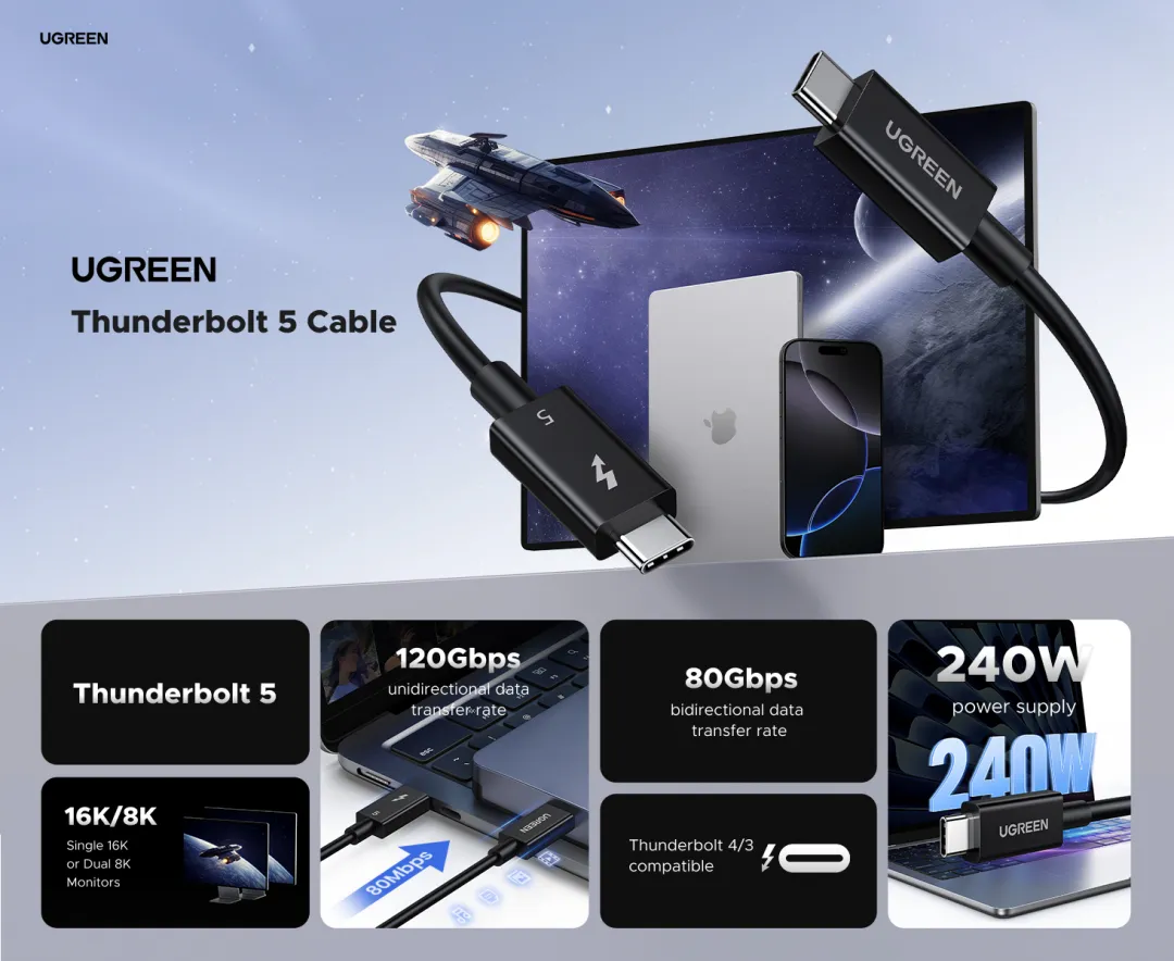 Be the first to review “UGREEN 45996 Thunderbolt 5 240W 1m USB-C Charging Cable”