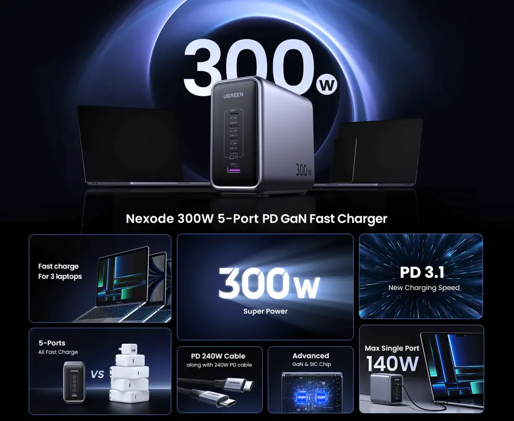 UGREEN Nexode 300W USB C GaN Charger 5 Ports 90903BUGREEN Nexode 300W USB C GaN Charger 5 Ports 90903B EUCD333 1