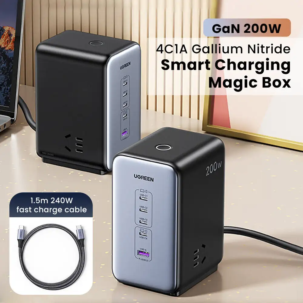 UGREEN S780 GaN 200W 7 in 1 Smart Charging Station (5 Charging Ports 4C + 1A and 2 AC) 25767