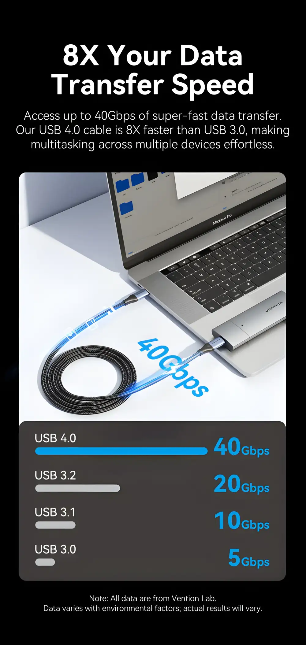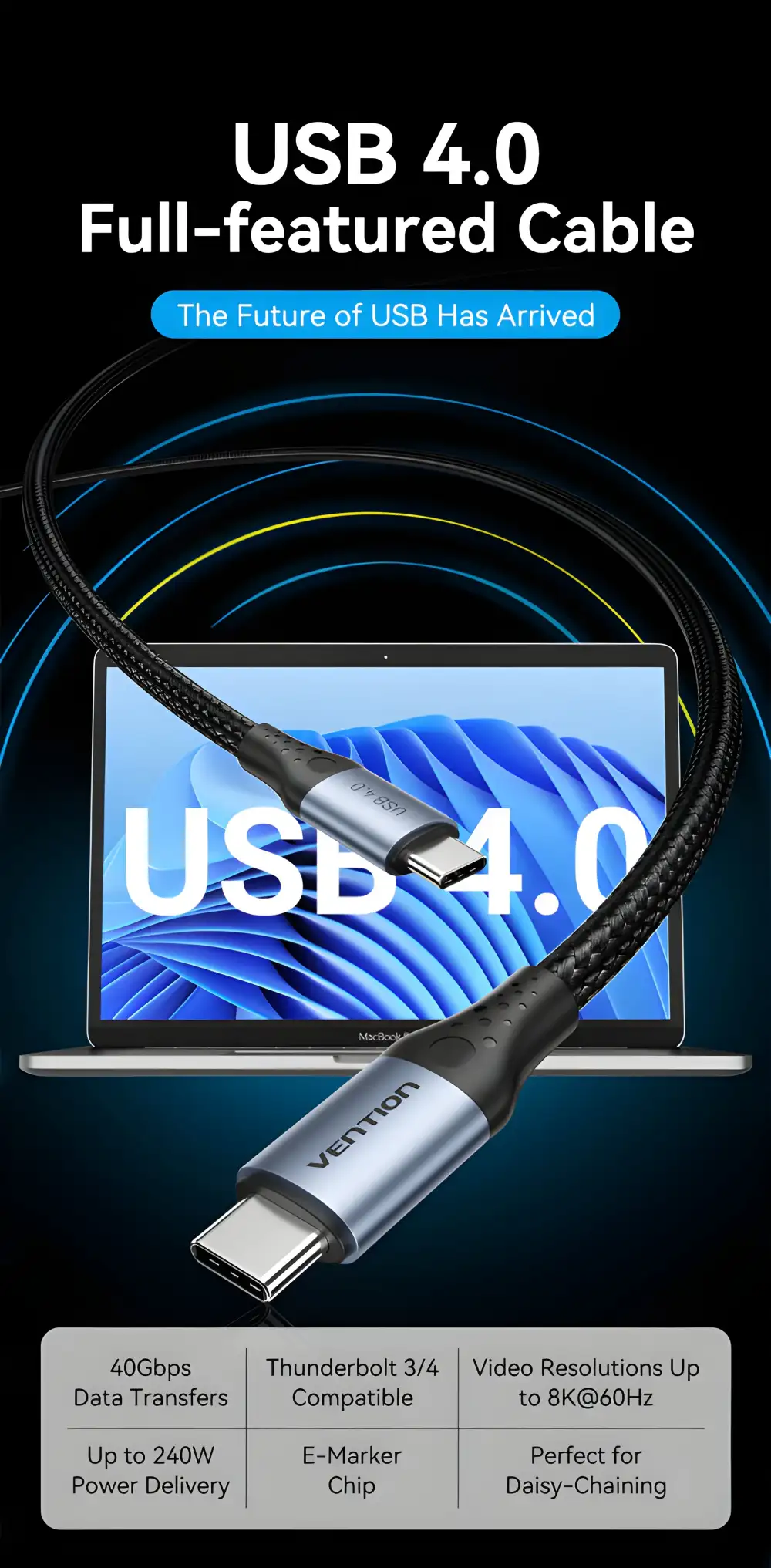 • Discover the ultimate in charging and data transfer with the Vention Cotton Braided USB 4.0 Type-