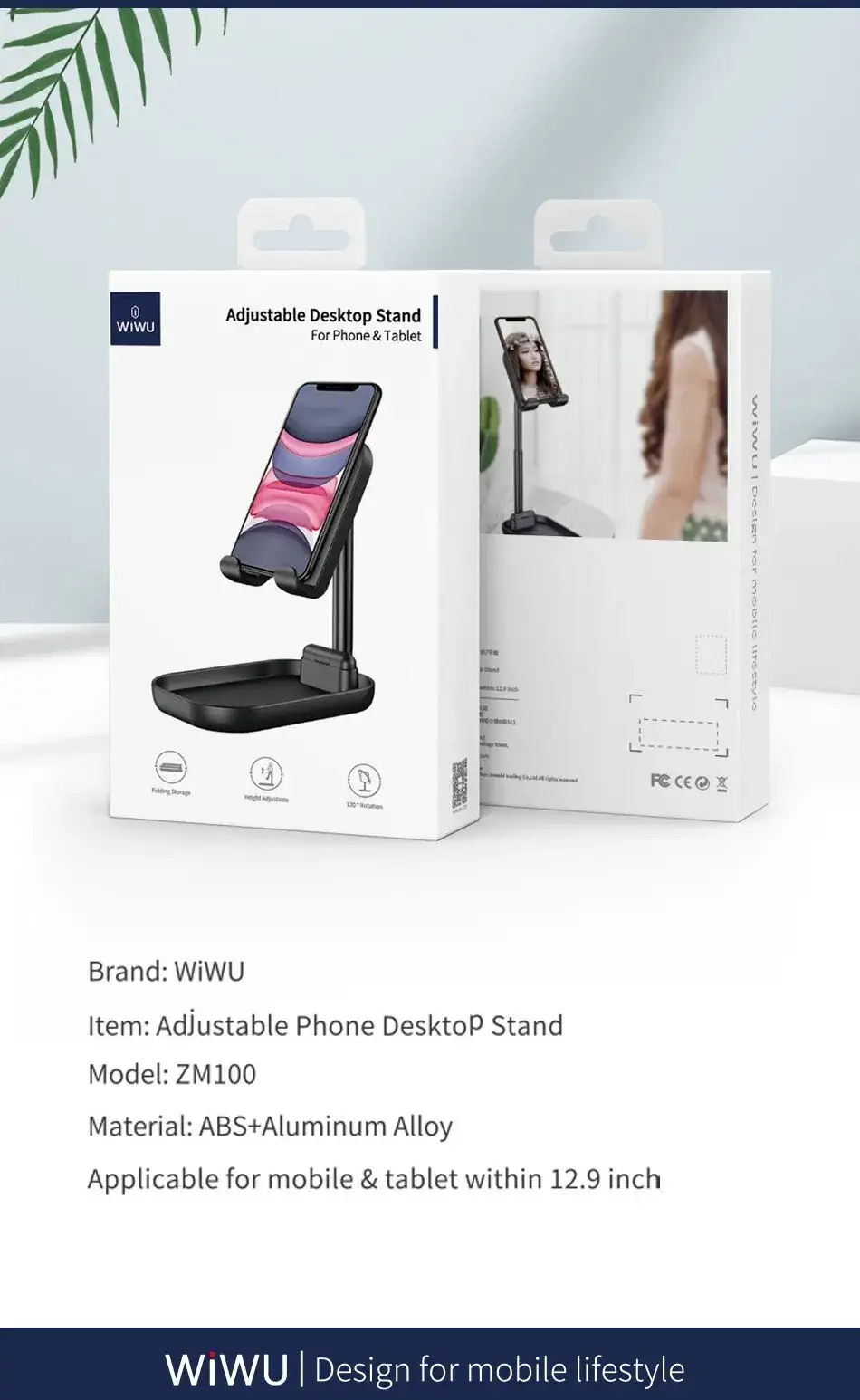 WiWU ZM100 Foldable Desktop Stand for Mobile & Tablet