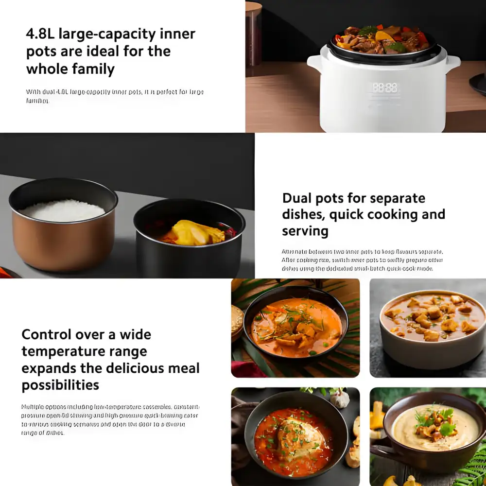 • Inner Pots: Dual non-stick inner pots for versatile cooking
