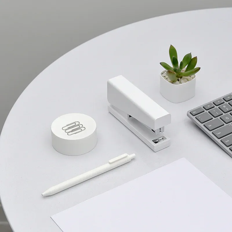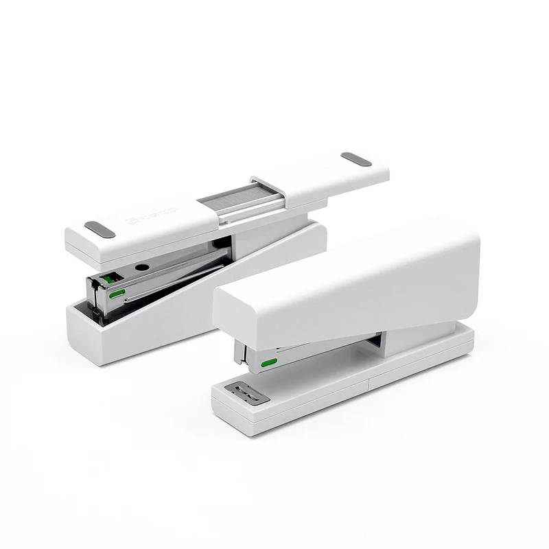 Xiaomi Mijia Kaco LEMO Stapler white front view Xiaomi Kaco LEMO Stapler in modern office setting Xiaomi Kaco LEMO Stapler with 100 staples pack