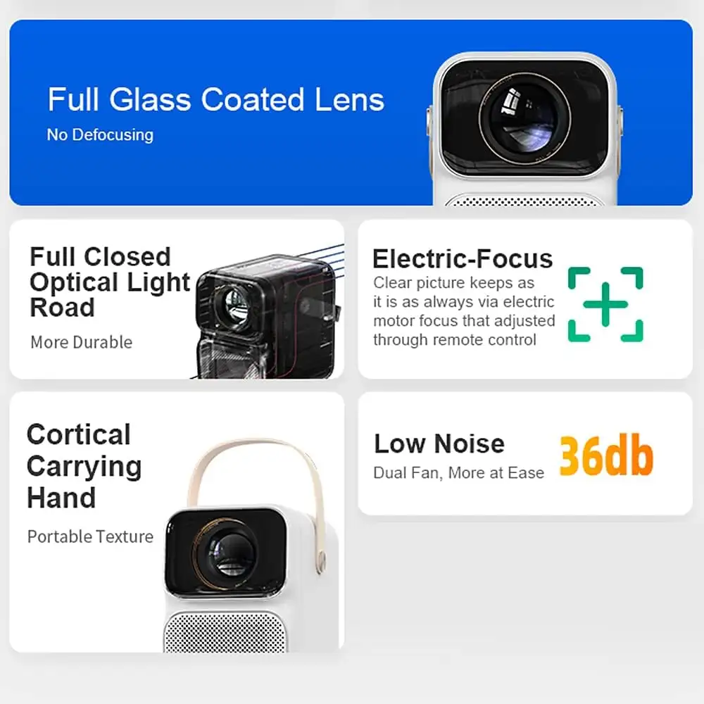 - Powered by an integrated Android smart system, the projector allows direct access to streaming apps, media platforms, and online content without external devices, creating a seamless entertainment setup that operates independently with smooth navigation and responsive performance.
