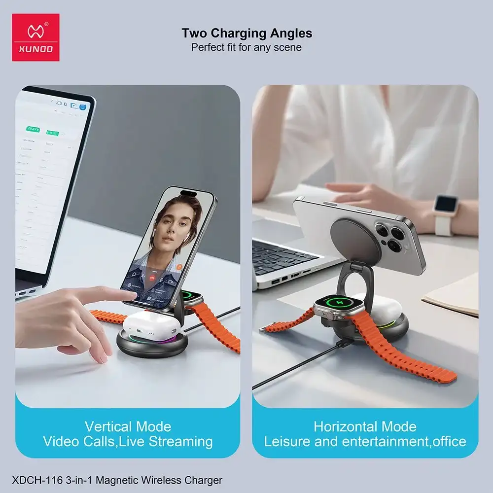 Xundd XDCH 116 Foldable Rotatable 3in1 Wireless Charger 1 Xundd XDCH 116 Foldable Rotatable 3in1 Wireless Charger Xundd XDCH-116 Foldable & Rotatable 3in1 Wireless Charger